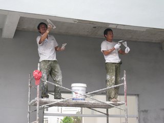 引進(jìn)墻面粉刷設(shè)備,各類粉刷工具齊全。先后多次組織員工參加星級服務(wù)培訓(xùn)。?