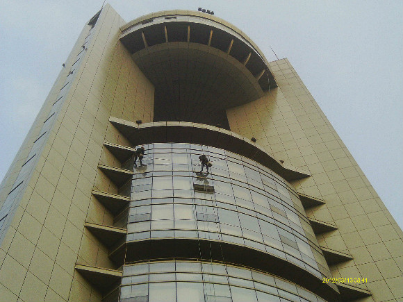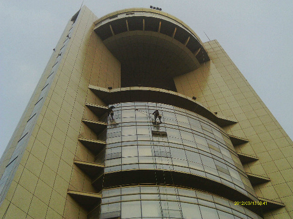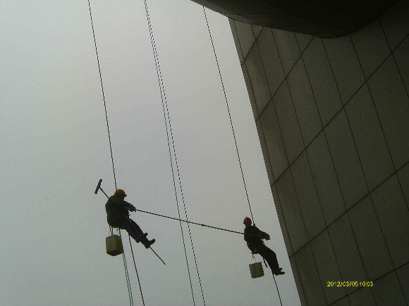 高層外墻工程包括: 高層外墻清潔、高層玻璃幕清潔、高層外墻粉刷、高空外墻廣告安裝。因為高層外墻存在著危險性和復(fù)雜性, 所以這項工作是有著相當(dāng)程度的科學(xué)性和專業(yè)性。